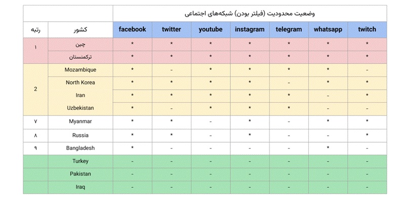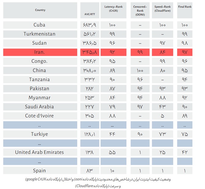 Among countries that had rankings across all three indicators, Iran ranked 97th out of 100, making it the country with the worst internet quality in this group.